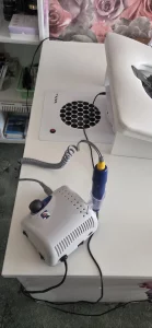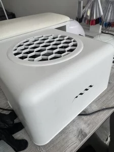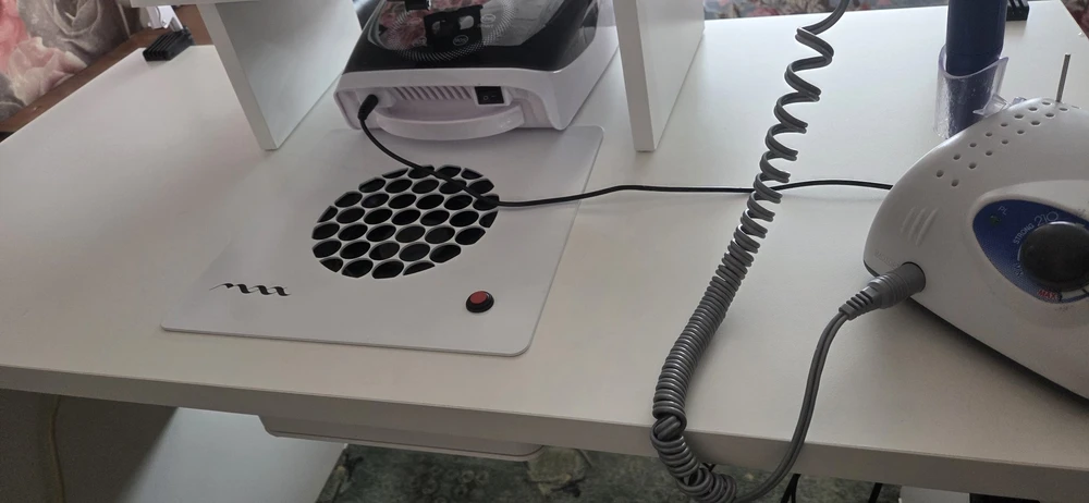 Корпус пылесоса изготовлен из прочного, ударостойкого полипропилена (ПП). Этот материал устойчив к большинству химических средств, применяемых в нейл-индустрии, поэтому вы можете не бояться случайного попадания капель препаратов. Для дезинфекции можно использовать стандартные средства, не содержащие агрессивных растворителей, как указано в инструкции.